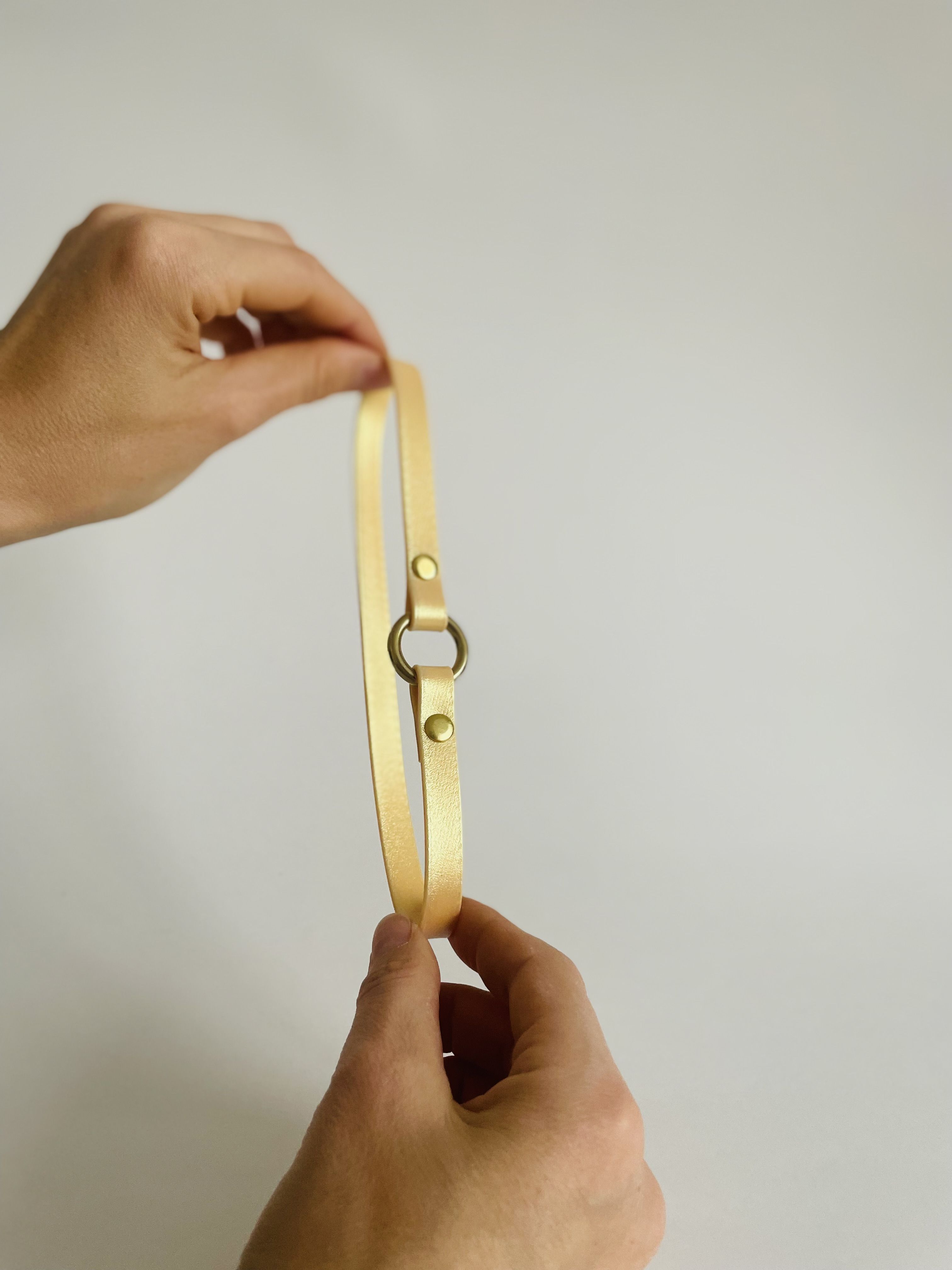 Цвет биотана золотой и блестит на солнце , золотой шимер . Кольцо из латуни премиум, заклепки латунь из Чехии. Ширина 1 см , длина 39 см.