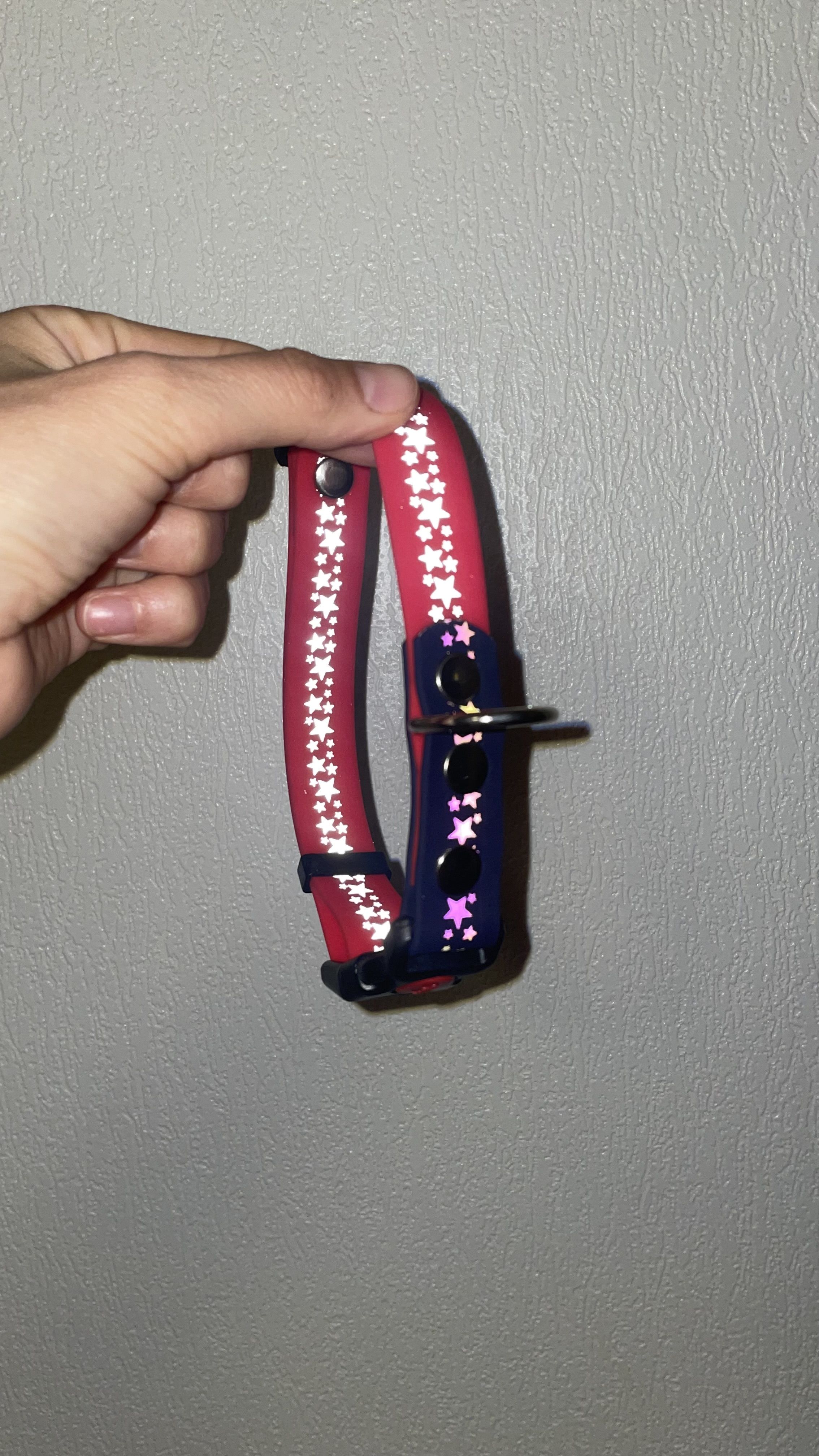 Ошейник для собак из Биотана. Ширина 20 мм , для средних собак. Звездочки имеют светоотражающие свечение. Это служит для безопасности в темное время суток.