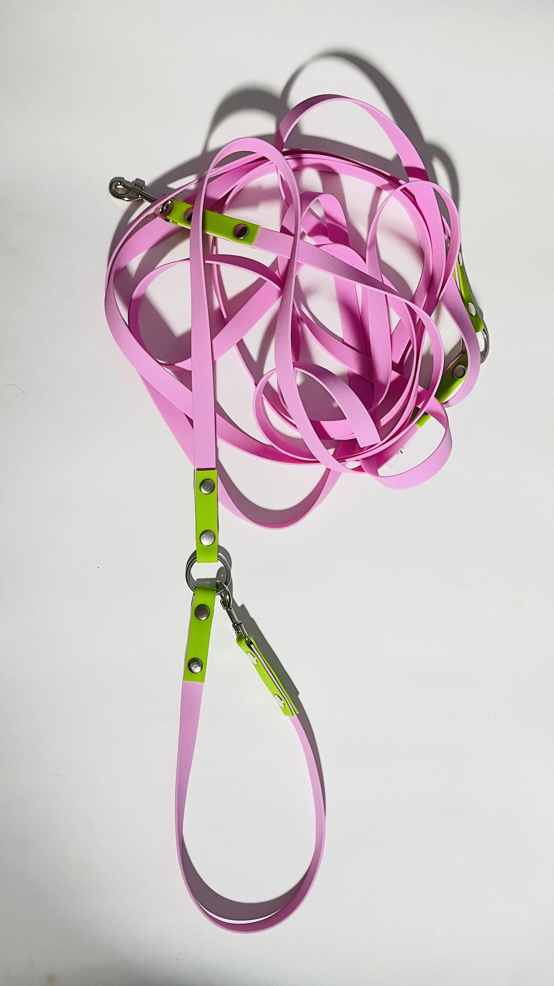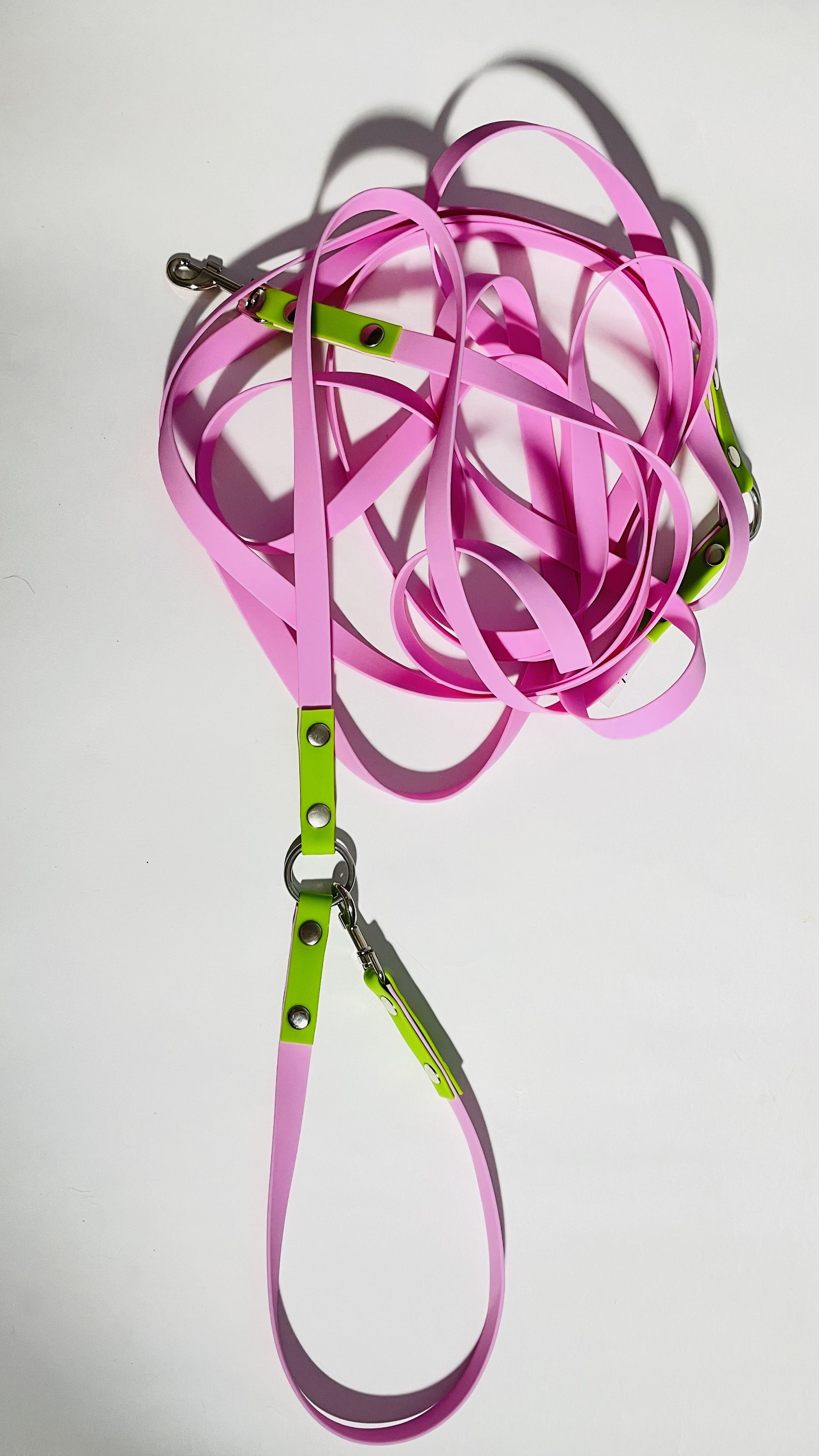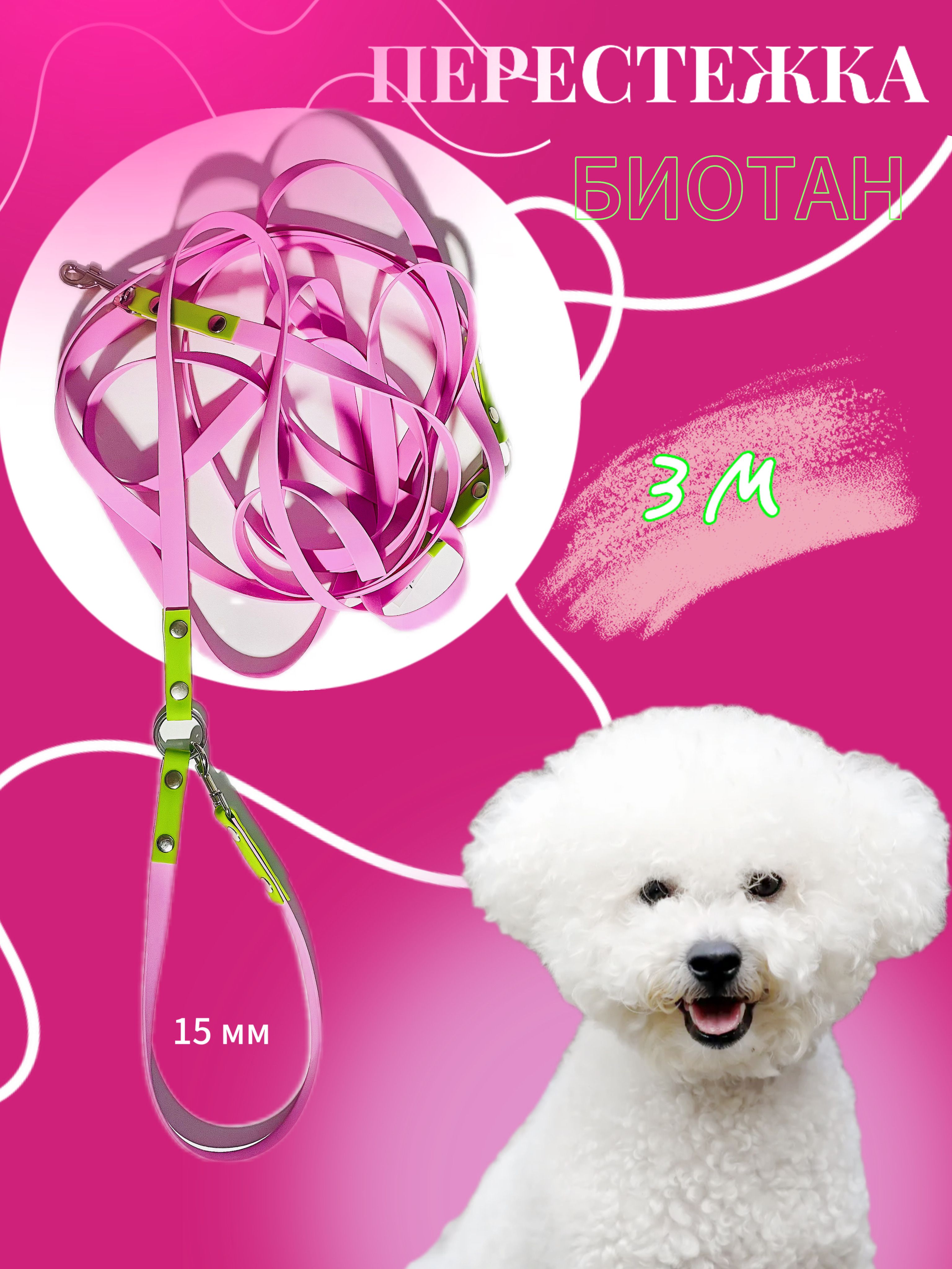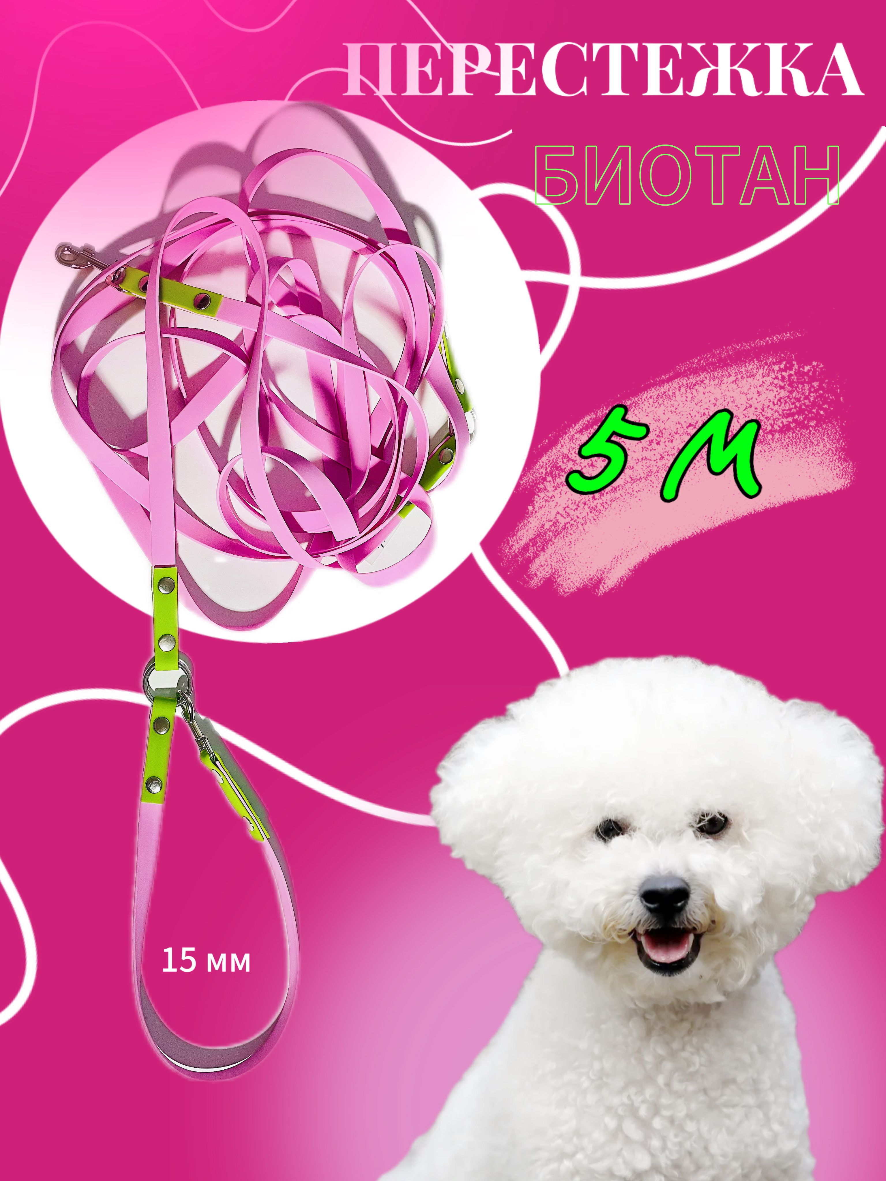 Перестежка для собак из Биотана, 15 мм, 5 м, розовый с зеленым