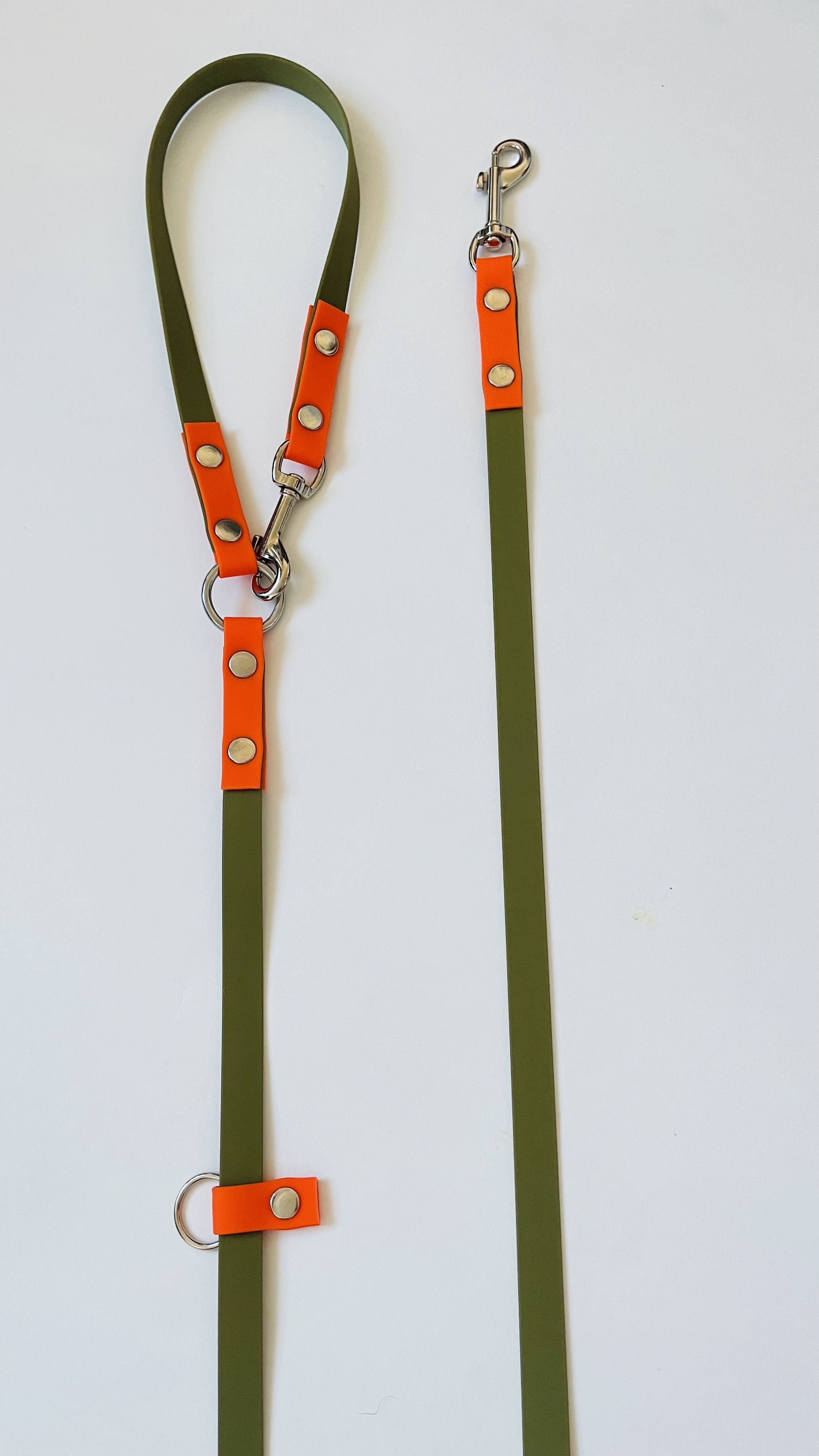 поводок Yki too предназначен для собак разных пород, средних и крупных размеров собак, что делает его универсальным выбором для каждого владельца. Ширина 20 мм обеспечит комфорт во время использования. Хаки идет как основной цвет а, оранжевый элементами на поводке выделит вашего питомца среди других, добавляя нотку стиля.