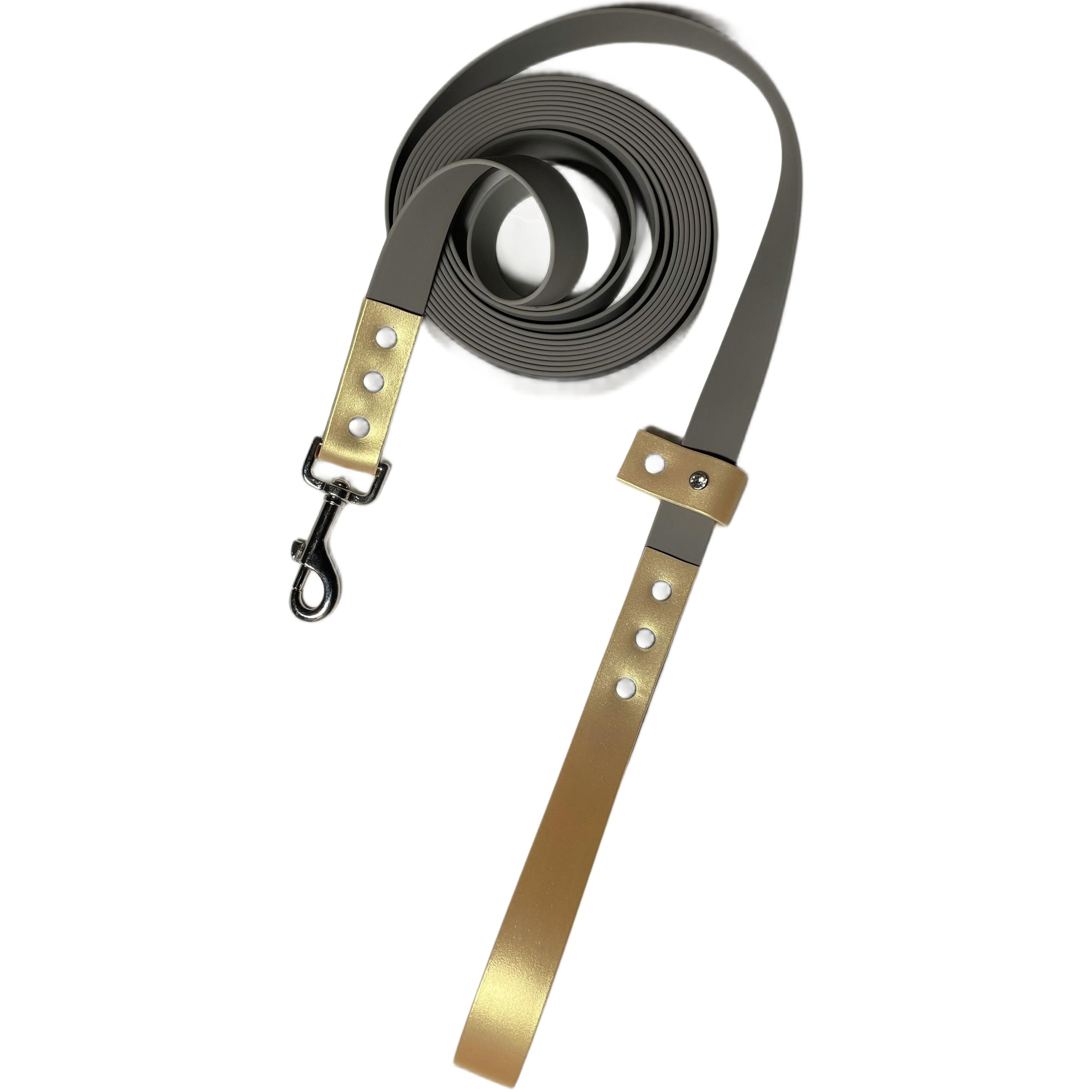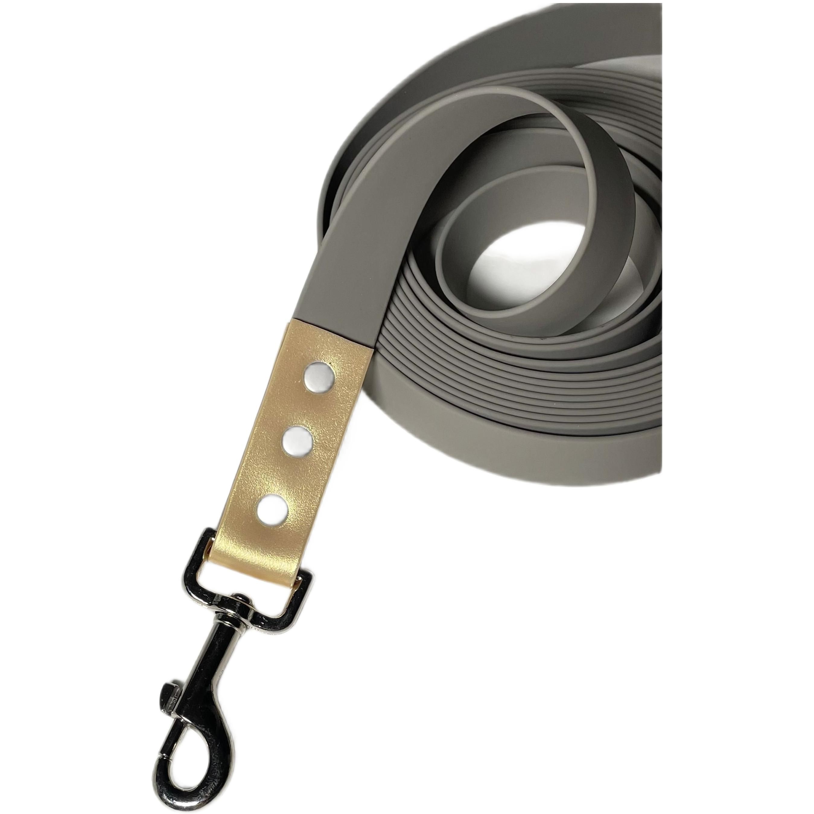 Перестёжка для собак средних и крупных пород обеспечивает надежную фиксацию и удобство во время прогулок и дрессировок. Длина 3 метров 25 мм позволяет вашему питомцу свободно исследовать окружающее пространство, сохраняя при этом контроль благодаря прочной ручке перехвата. Изготовленная из высококачественного биотана, эта перестёжка отличается прочностью и долговечностью, не поддаваясь износу даже при активном использовании.Серый и золотой шимер делает данный аксессуар стильным и привлекательным для владельцев. Биотан не только устойчива к воздействию влаги, но и легко очищается от загрязнений, что делает его идеальным выбором для активных прогулок на свежем воздухе.