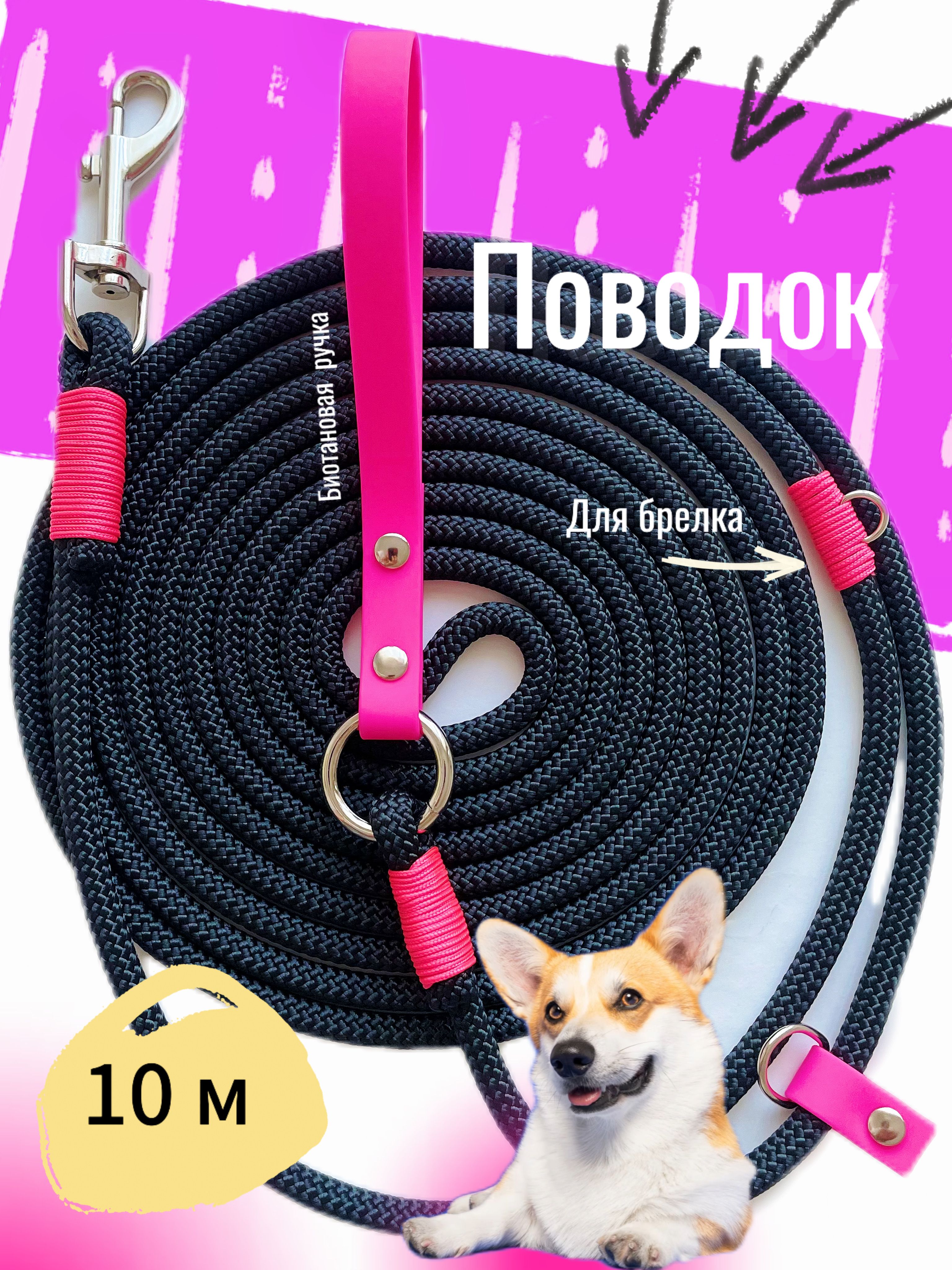 Биотановая ручка гарантирует удобство хвата, не натирает руку и остается мягкой на ощупь в любых погодных условиях. Поводок веревка для собак имеет прочную конструкцию, что обеспечивает контроль над питомцем даже в самых неожиданных ситуациях.