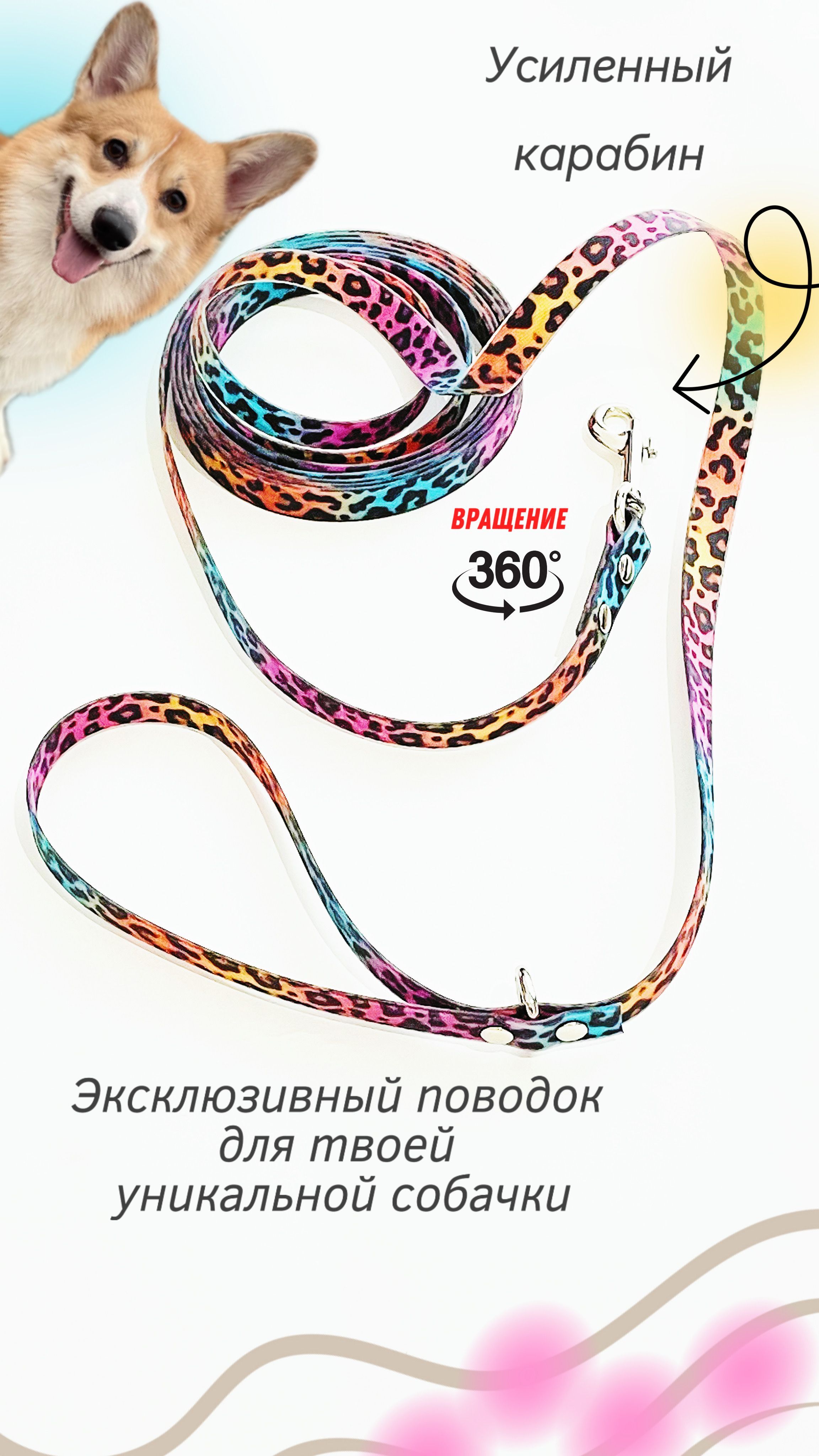Биотановый поводок для собака, Yki too созданный специально для средних и мелких пород!Надёжный материал биотан, имеет мягкую ручку для максимального комфорта рук.Акцент цвета с рисунком леопард с цветом.Усиленный литой карабин высокого качества из 100% нержавеющей стали/хромированный, разрывная нагрузка 180 кг Поводок созданный профессионалами на долгие годы. Характеристика: Ширина 15 мм.Цвет рисунок леопард. Карабин 7 см , 26 гр. Длина 7 м. Сделано в России. Упаковка фирменная. Уход:При загрязнении протирать влажной салфеткой. Так же можно стирать в стиральной машине с порошком , при 40 градусах.