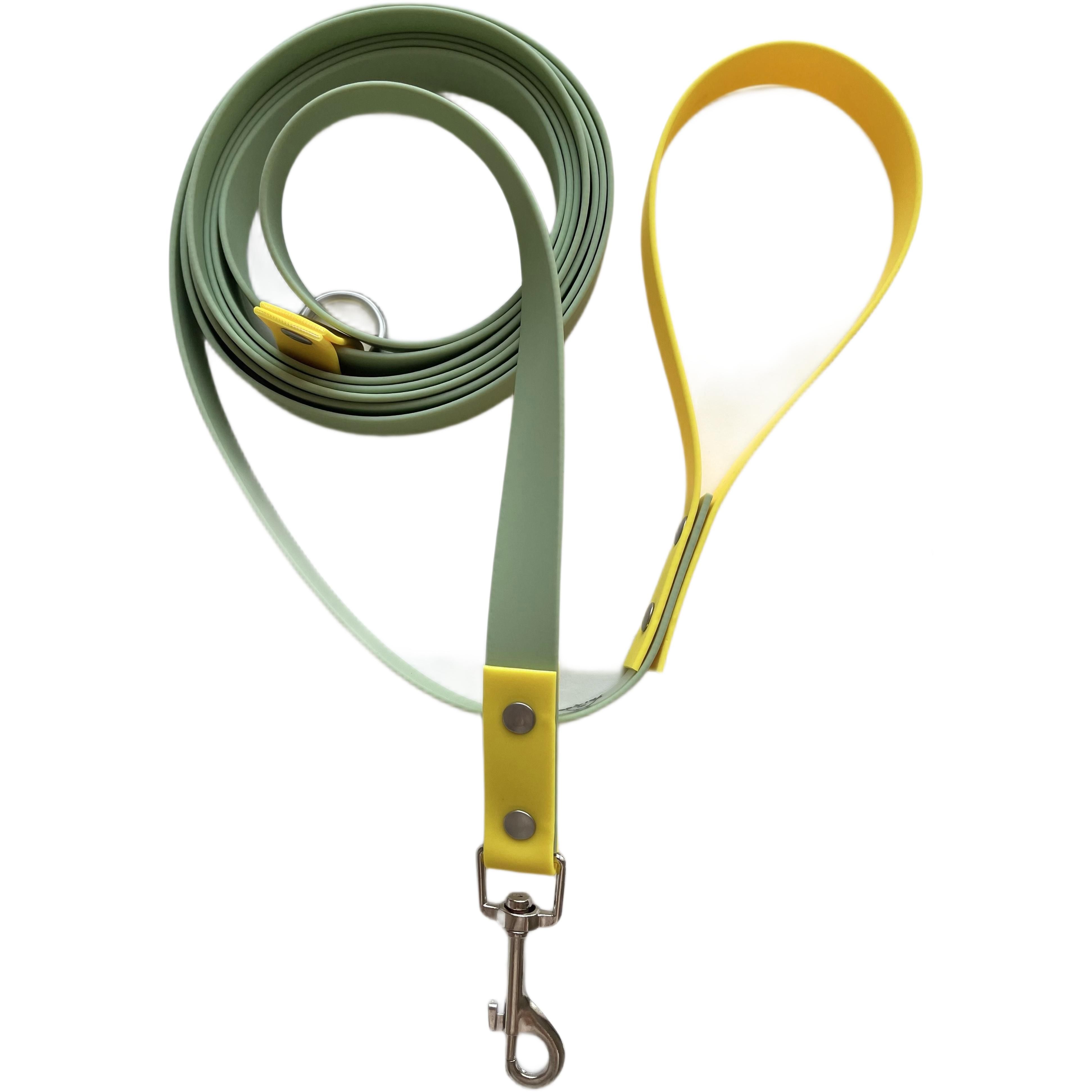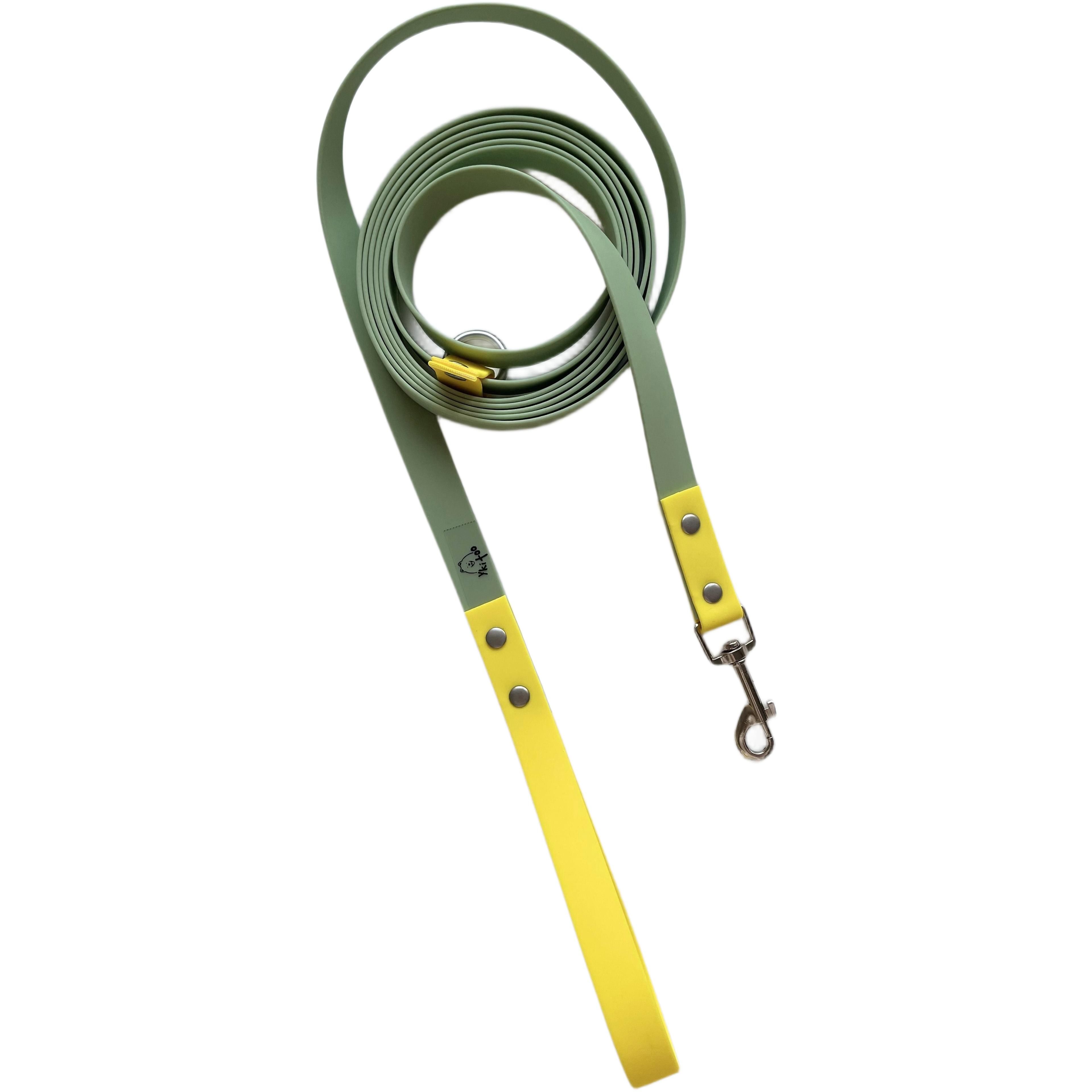 Представляем вашему вниманию поводок из биотана шириной 15 мм и длиной 5 метров, выполненный в стильном оливково-желтом цвете. Этот поводок идеально подходит для прогулок и дрессировки, обеспечивая надежный контроль и комфорт для вашего питомца.