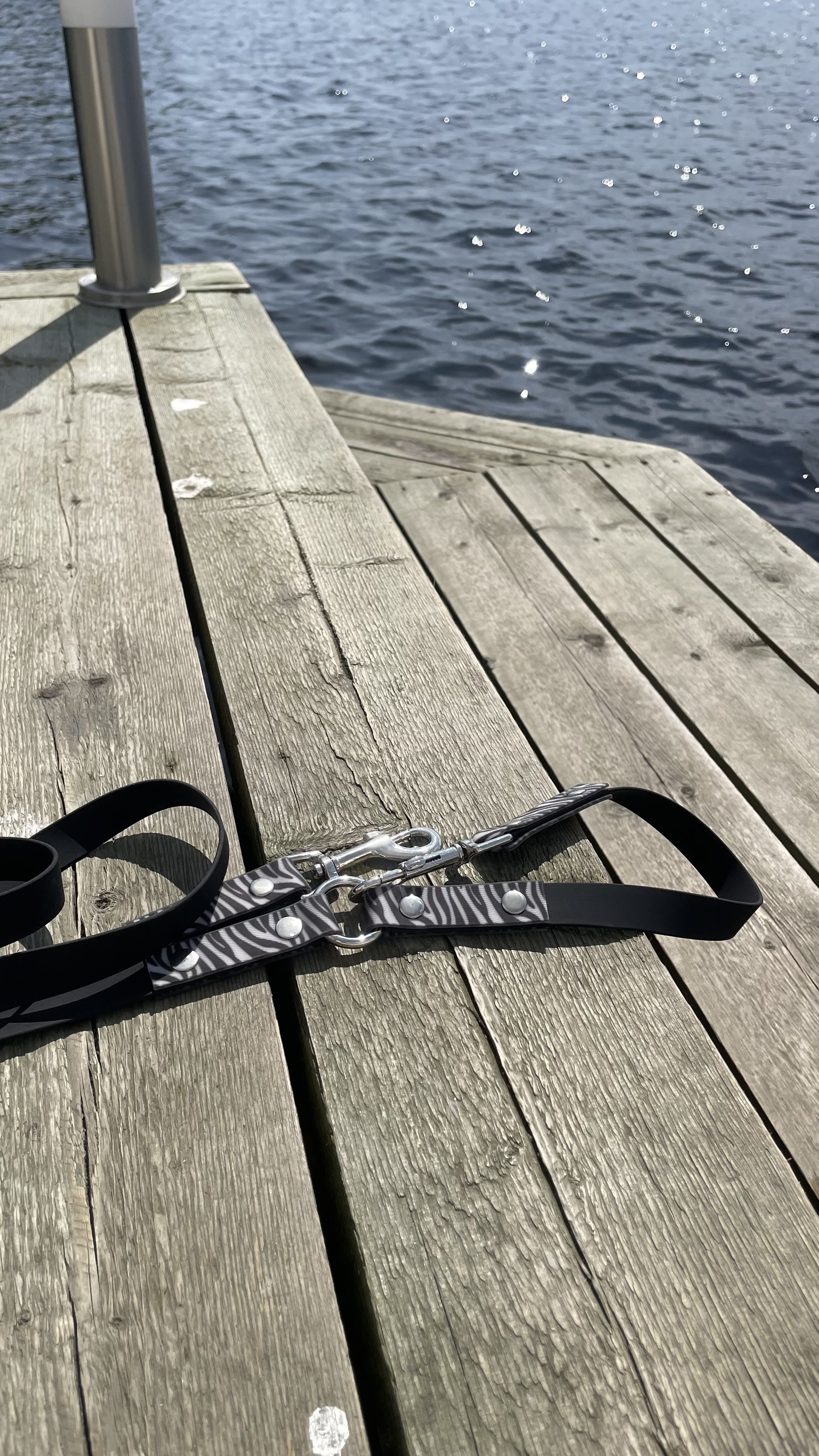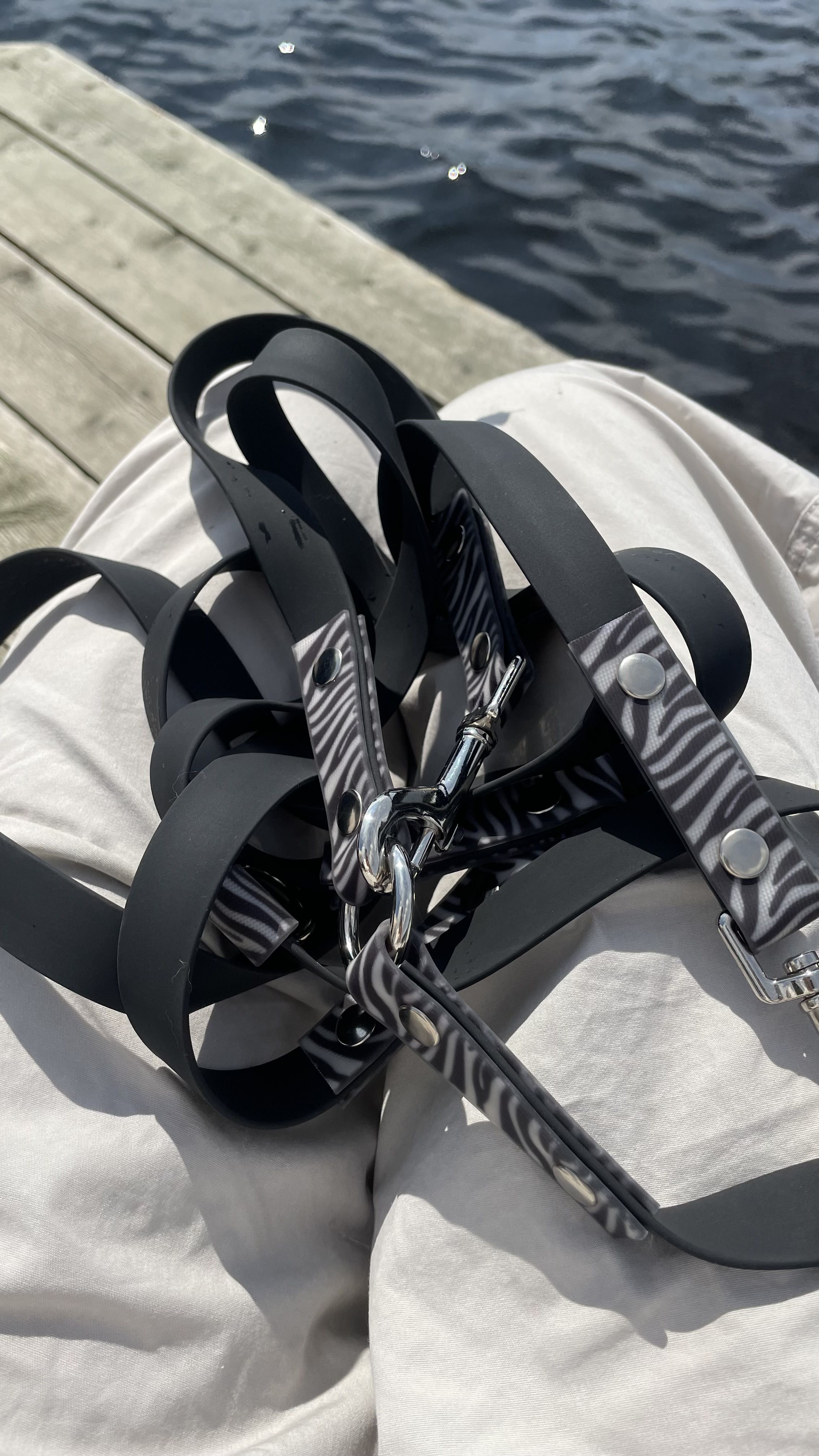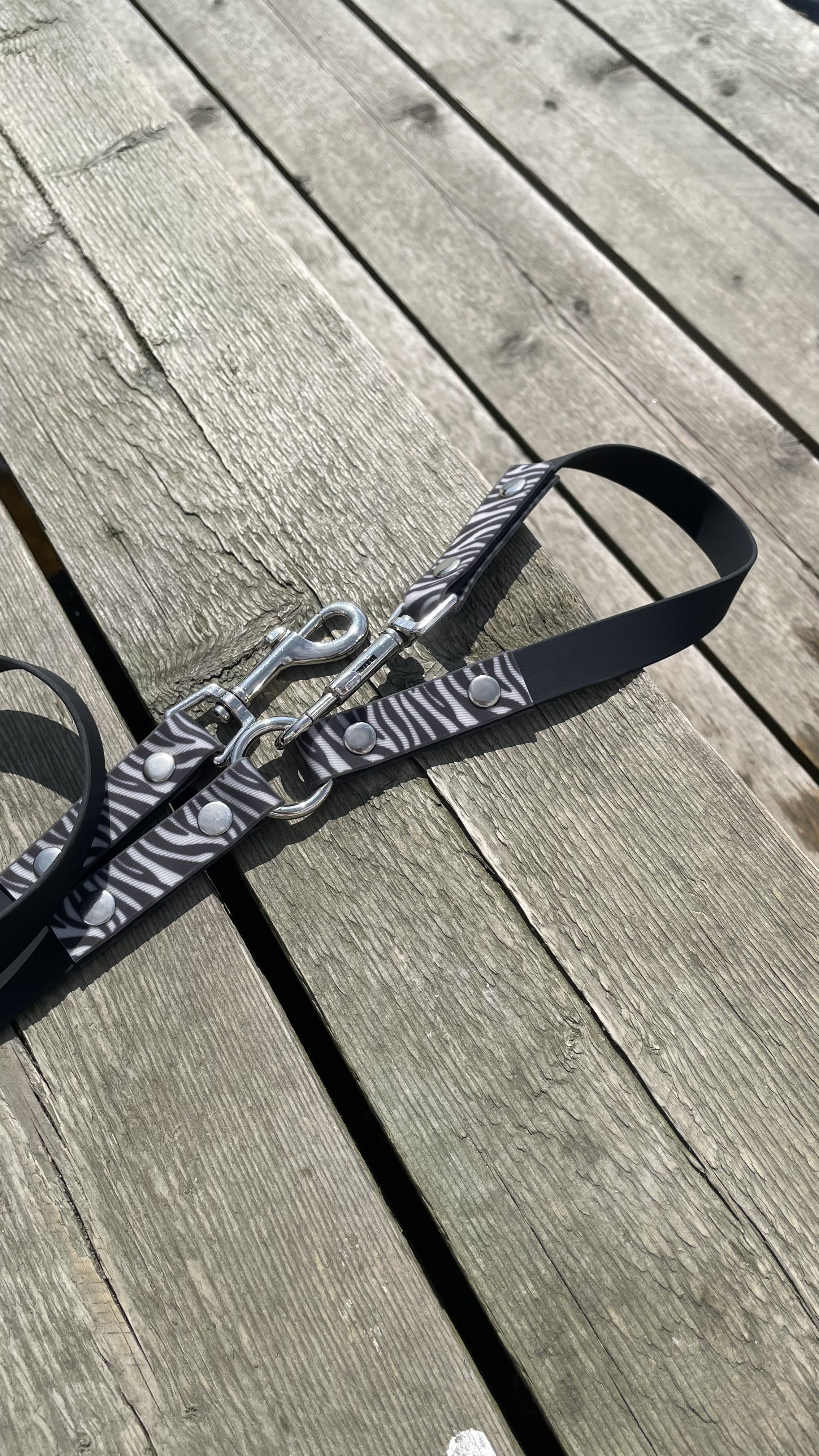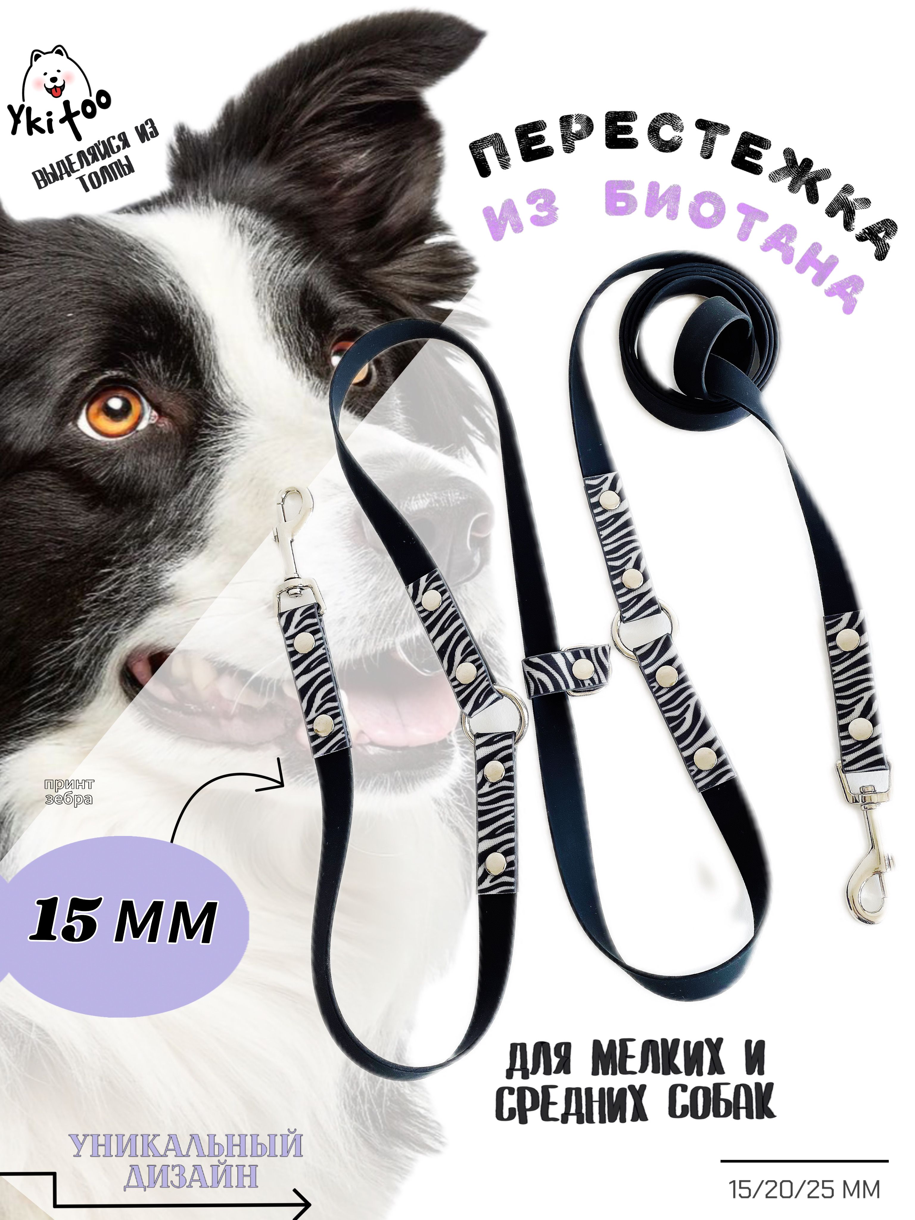 Поводок перестежка 3 метра , для собак из Биотана , 15 мм , черный / зебра