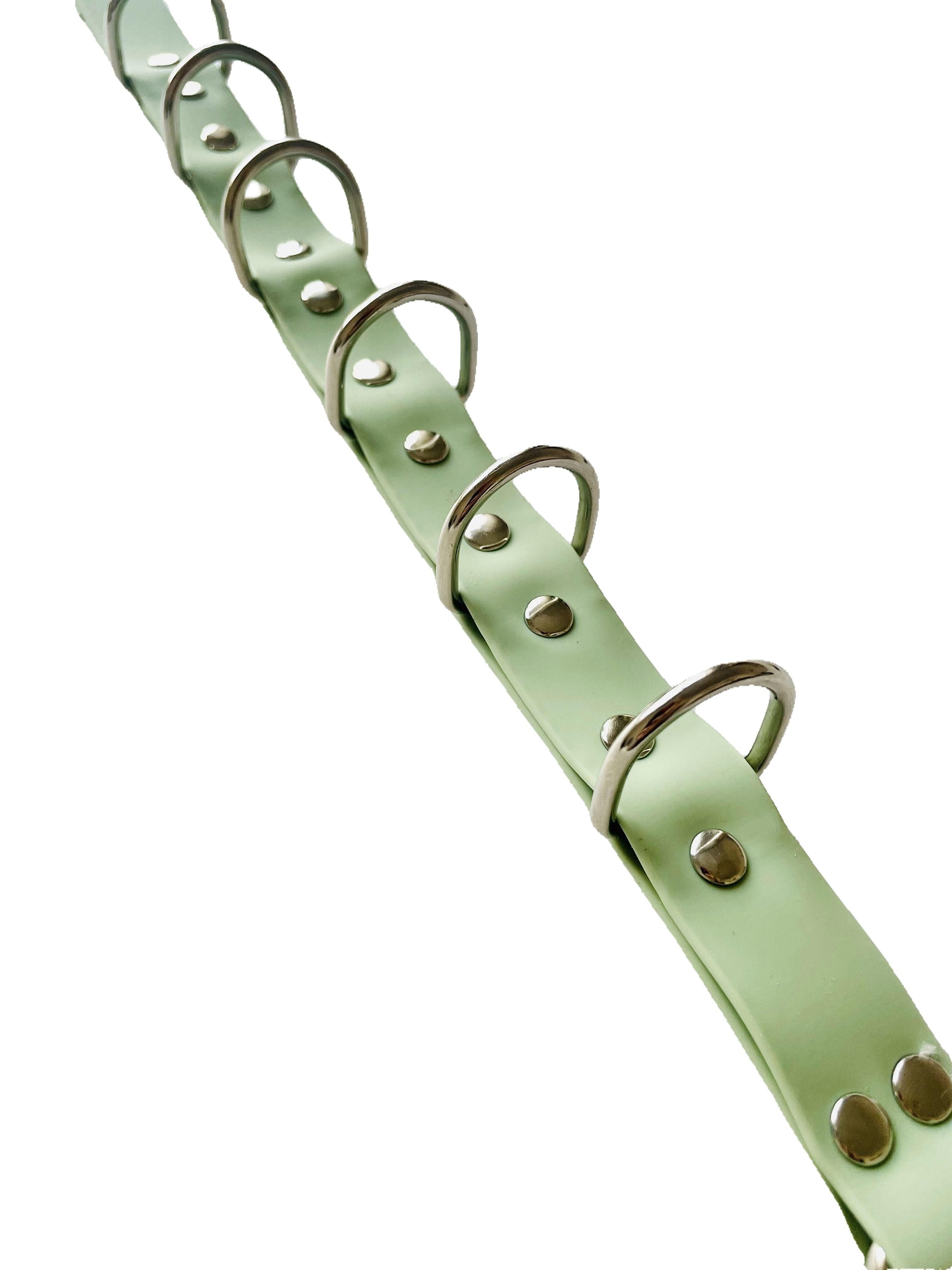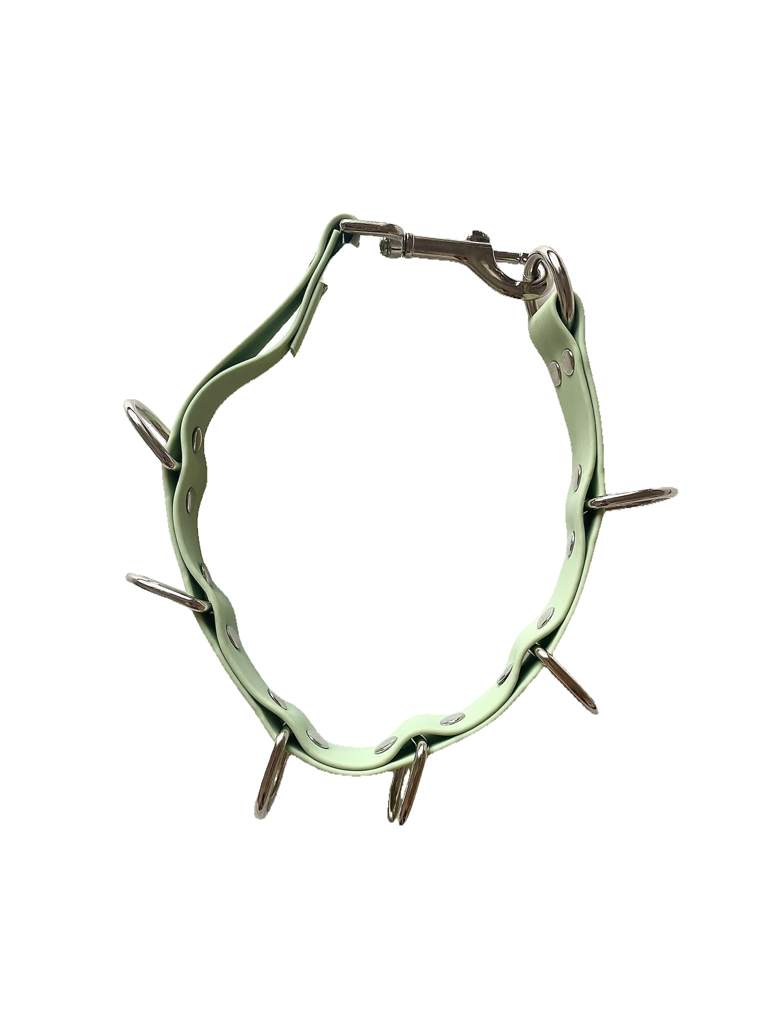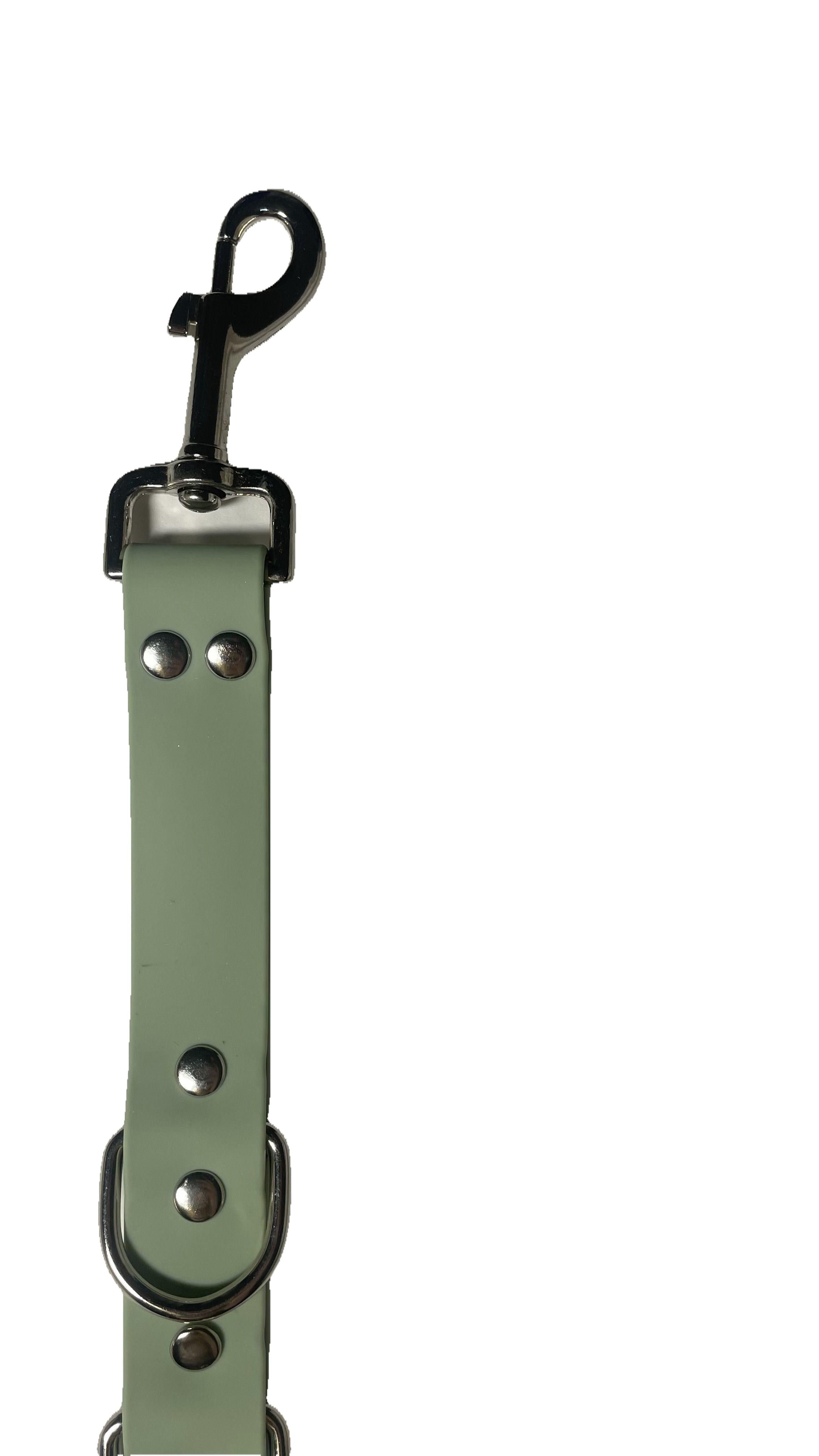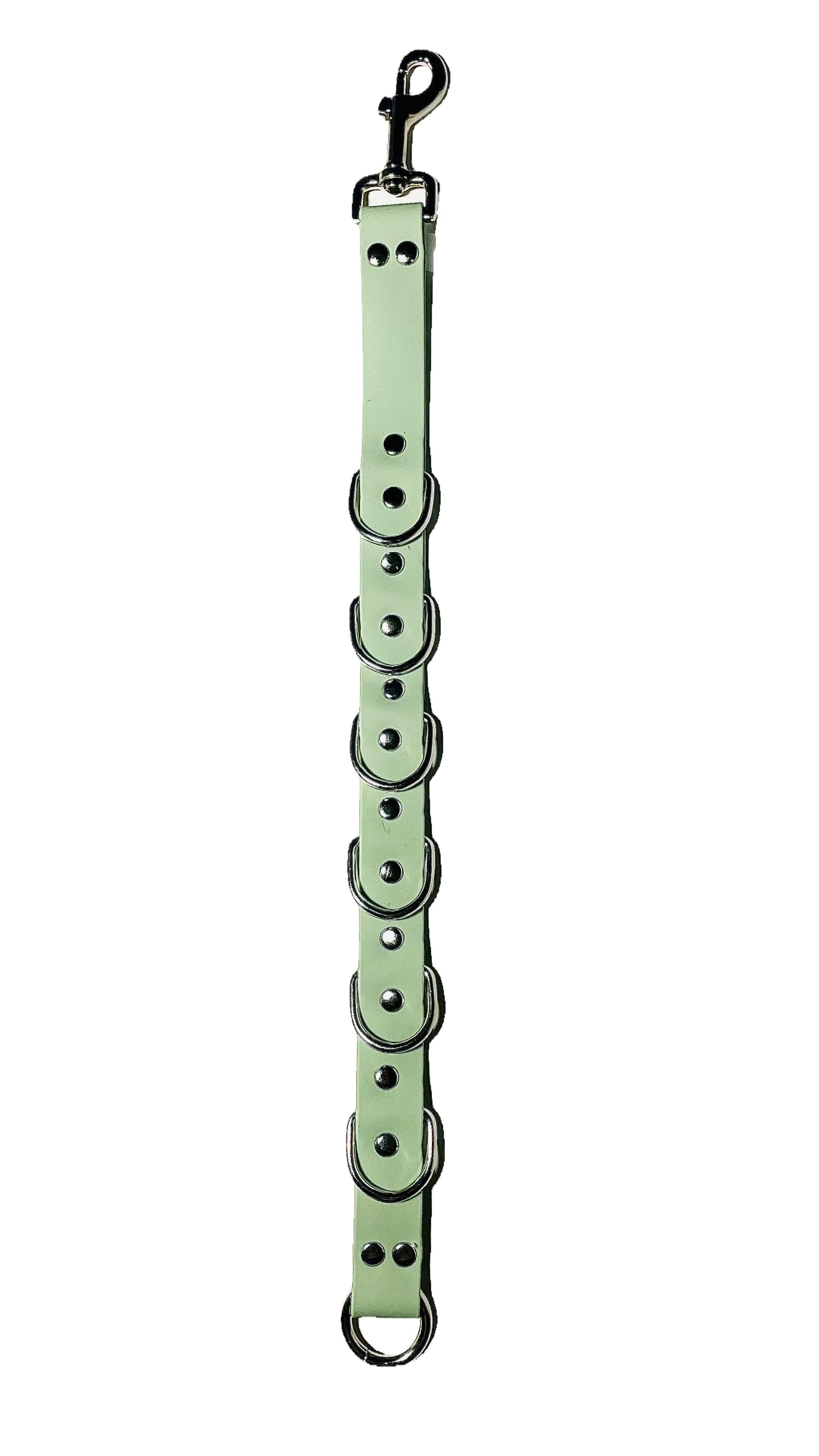 Прочный и эргonomicкий удлинитель из высококачественного биотана, разработанный специально для фиксации собак любого размера во время стрижки. Цвет олива гармонично сочетается со стандартными элементами оборудования, а мягкая поверхность обеспечивает безопасное закрепление без травмирования кожи животного.