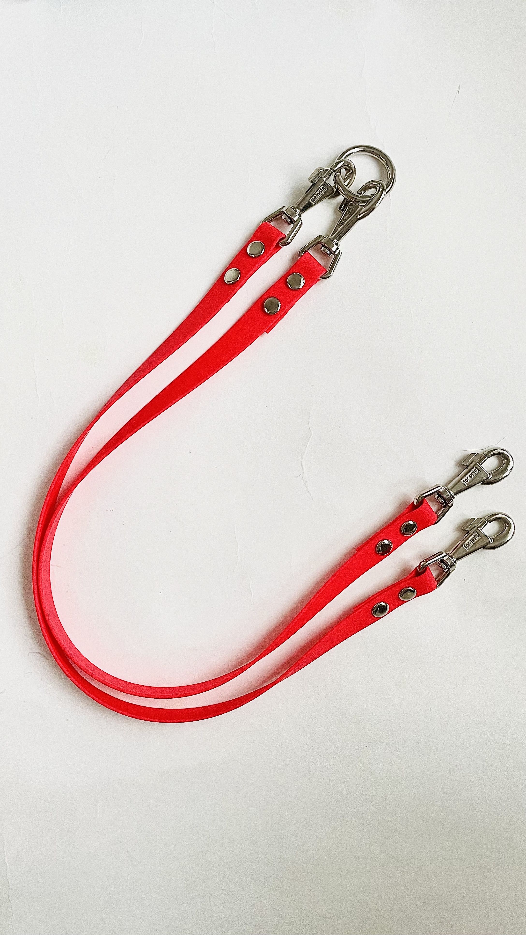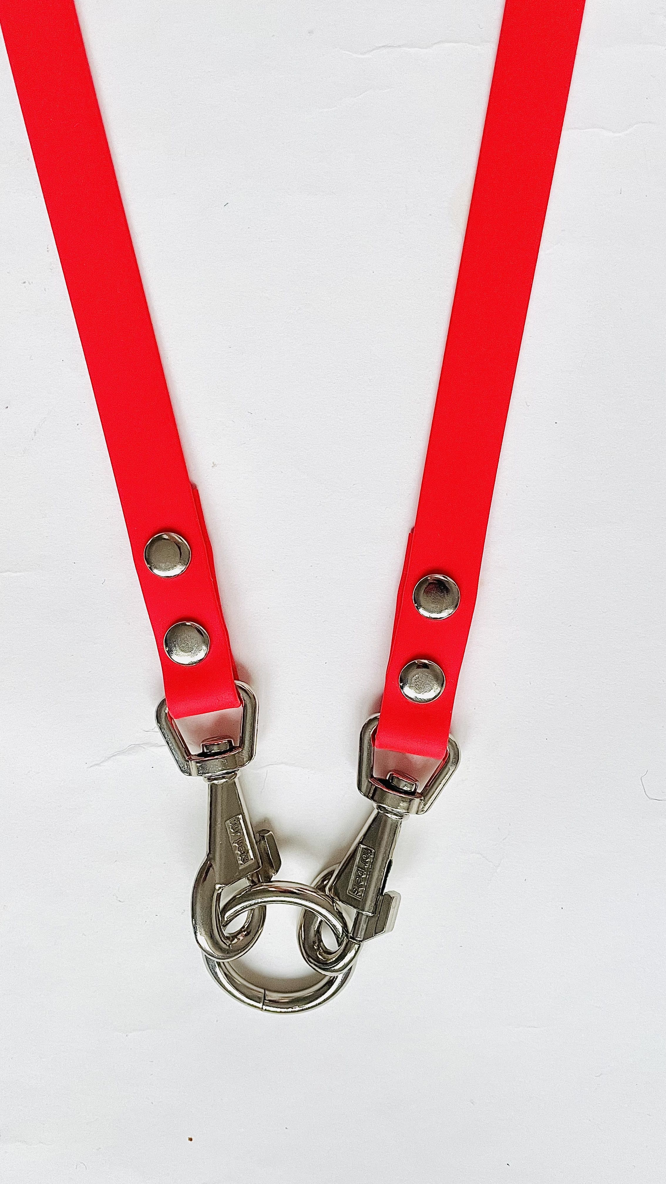 Сворка водонепроницаемая из биотана на 2 собачки. Подходит для мелких, средних пород собак. Карабины серии PET для собак , усиленные, прочные и надежные. Вся конструкция из Биотана, 15 мм ширина. Сворка 40 см , с двух сторон карабин анти закручивание. Сворка для собак создана для того , что бы было удобно гулять одновременно с двумя и собак. Створки с двух сторон на карабинах , серии PET , усиленные с вертлюгом. Ветлуг удобен в том, что бы при перемещении собачек они не запутывались и могли спокойно меняться местами. Кольцо сварное очень прочное, выдерживает нагрузку 300 кг. Данная сворка удобна тем, что если вы пошли гулять с одной собакой , одну сварку для собаки отстегиваете и оставляете дома или удлиняете поводок прицепив сворку к сварке. Биотин имеет уникальные свойства. Не впитывает воду, грязь и запахи. Не дубеет на морозе и не выгорает на солнце. Обладает высокой прочностью, устойчив к износу, укусам. Не травмирует кожу рук рю при рывке и обеспечивает прочный хват рукам. Разрывная нагрузка: 280 кг, Очень прочный, мягкий и гибкий материал. Легко моется просто водой, сохнет 1 мин. Не спутывает шерсть питомца.