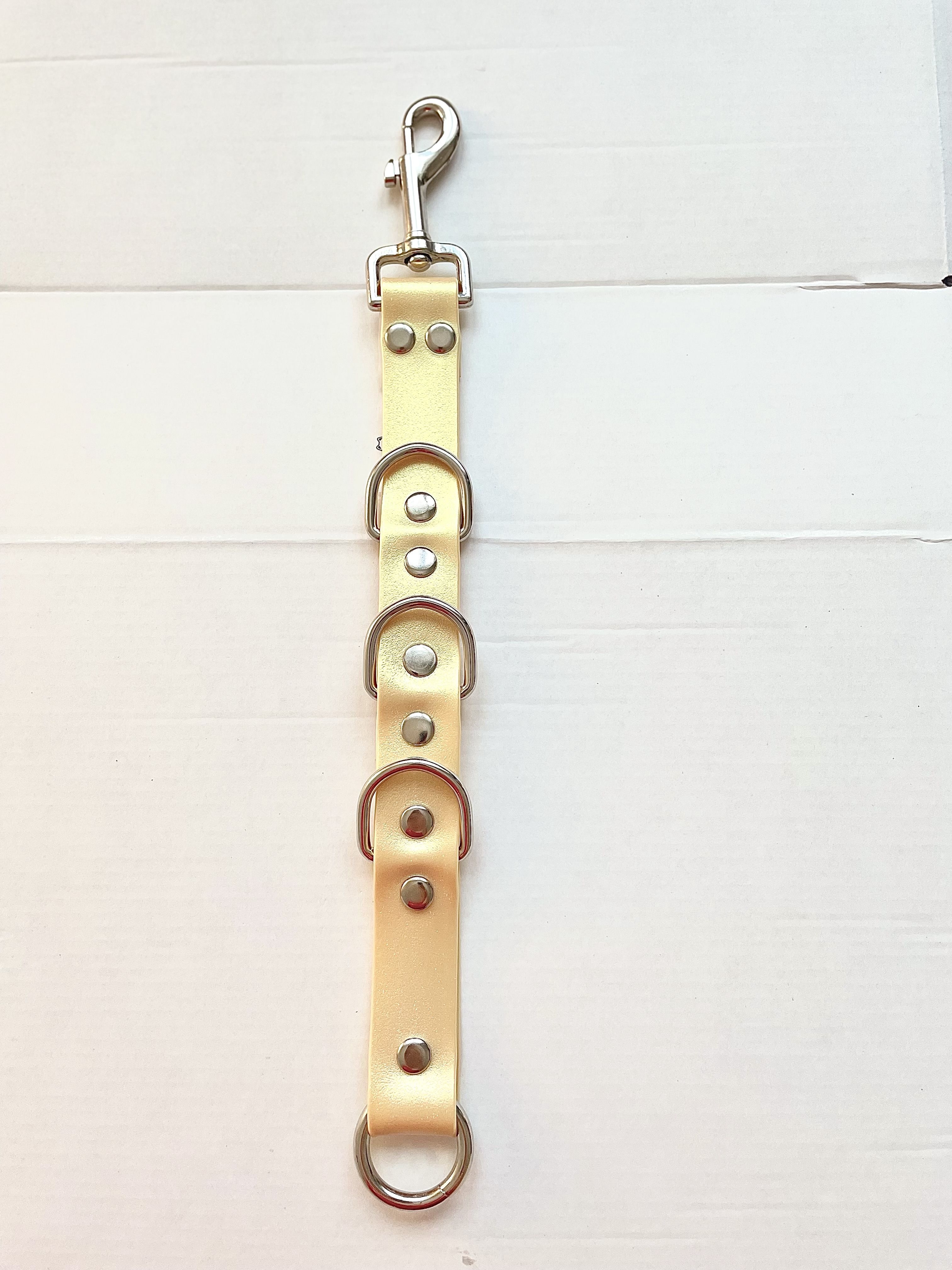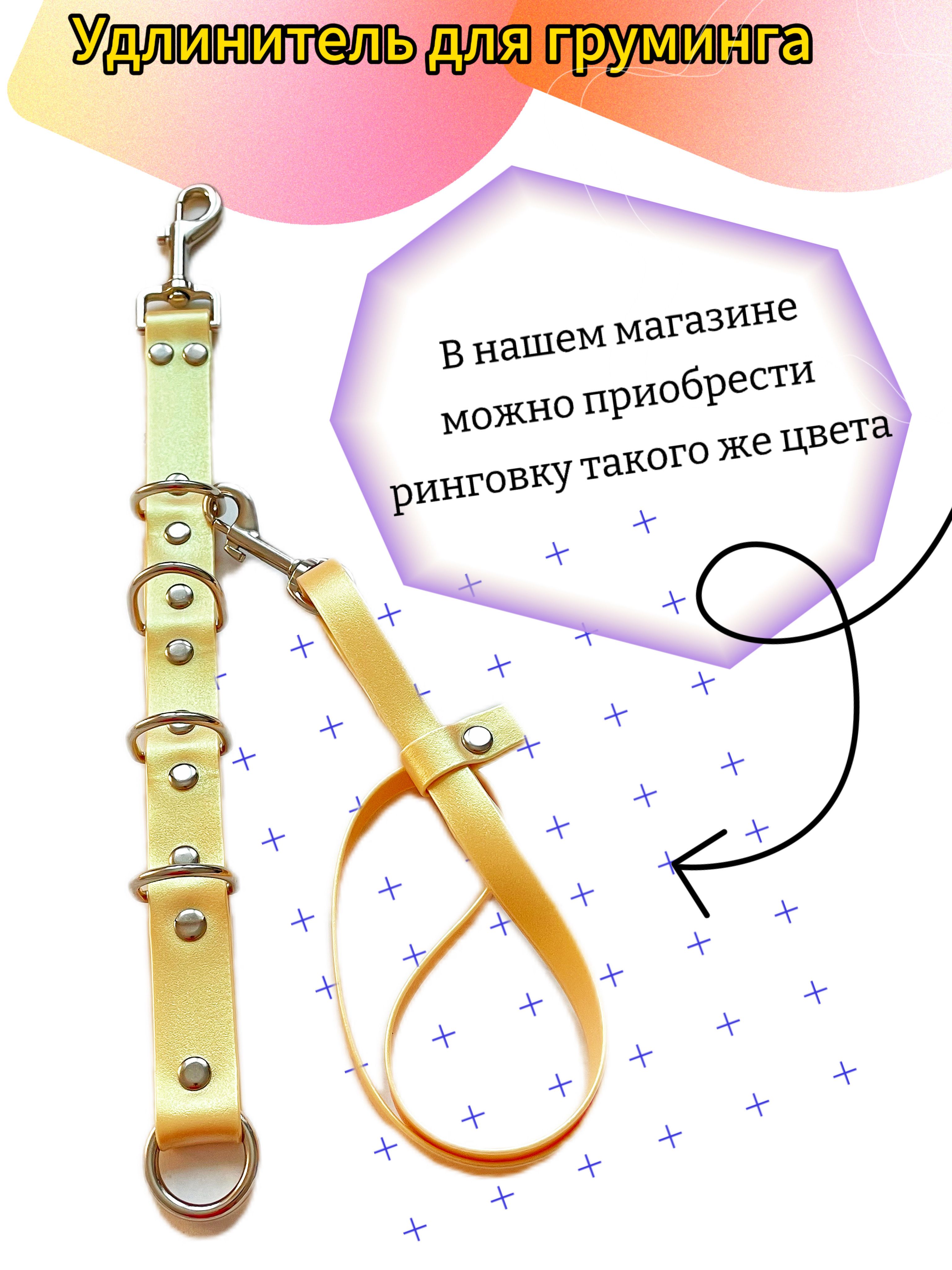 Данное изделие в груминг сфере называют , удлинителем, переходником, перестежкой. Для чего оно нужно . Во время стрижки грумеру нужно подойти к собачке с разных сторон и чтобы собака была удобно зафиксирована , в нужном месте и определенной позе. Данный удлинитель ринговки с этим помогает на все 💯 % одна из необходимых вещей в грумиг салоне, как ножницы для стрижки собак. Преимущества материала Биотан водонепроницаемый. Не впитывает грязь. Очень прочный материал. Характеристики:Длина 40 см. 5 точек крепления. Сварные прочные полукольца. Карабин серии для собак. Шаг колец через 5 см .